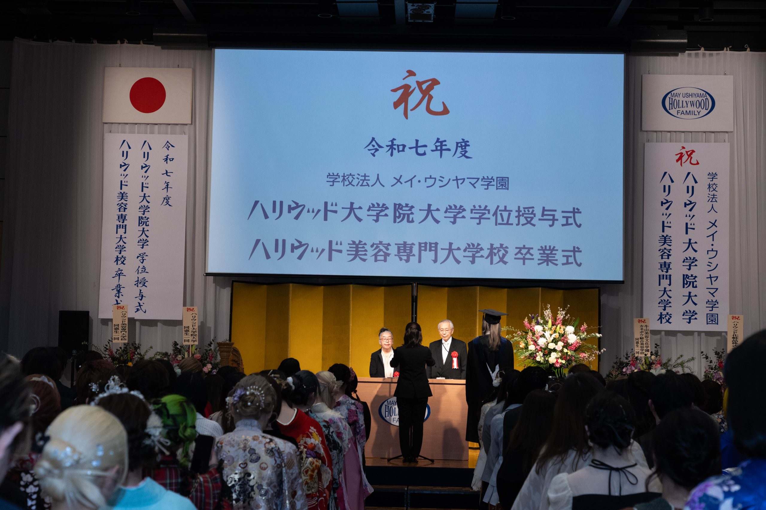 3月7日に2025年度メイ・ウシヤマ学園ハリウッド大学院大学の学位授与式が、ハリウッド美容専門学校の卒業式とともに挙行されました。 202